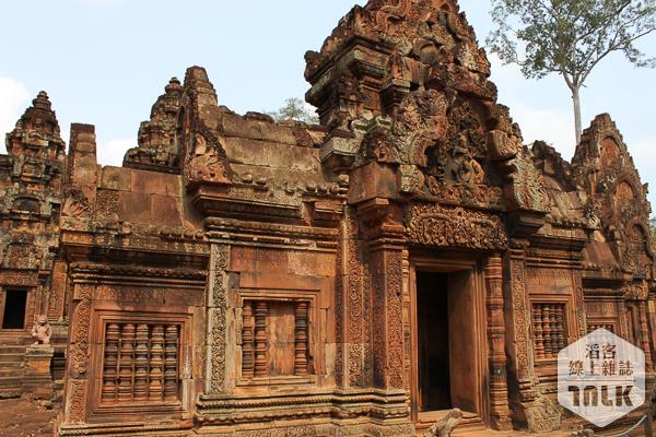 女皇廟((Banteay Srei)寓意著庇護女性,是敬獻給濕婆神的寺廟,Banteay Srei在高棉語的意思為女人之城,廟裡的雕刻特別繁雜精細,尤以浮雕特別有看頭,而中央祠堂的女神雕刻,如同藝術作品般精美,更有「東方蒙娜麗莎」的美譽。建議在清晨、傍晚前往,不僅遊客較少,此時的陽光照射在赭紅砂岩上,更顯牆上浮雕的美。