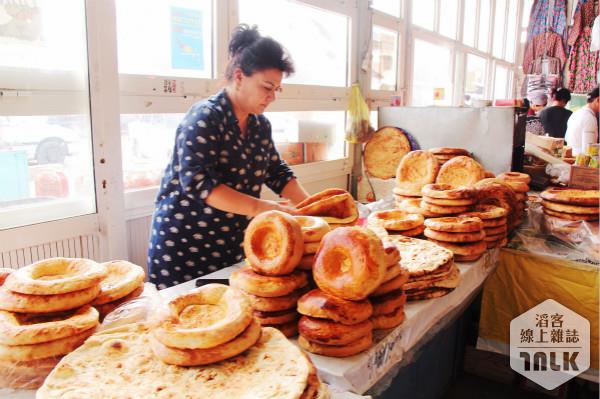 身為大城之一的奇姆肯特有別於阿斯塔納的現代化,依然蘊含著濃濃的鄉村風。比臉大好幾倍的大餅隨處可見,是每日家家戶戶早中晚三餐都少不了的靈魂食物。春天的市場裡充滿著新鮮蔬菜水果的香氣,櫻桃、草莓、杏子相較起大城市來便宜得多,讓人覺得不買確實太虧欠自己。奇姆肯特人的特色之一,是非常喜歡做買賣生意,大街上可見許多自營的中小企業,南販北賈的自成一片風景。