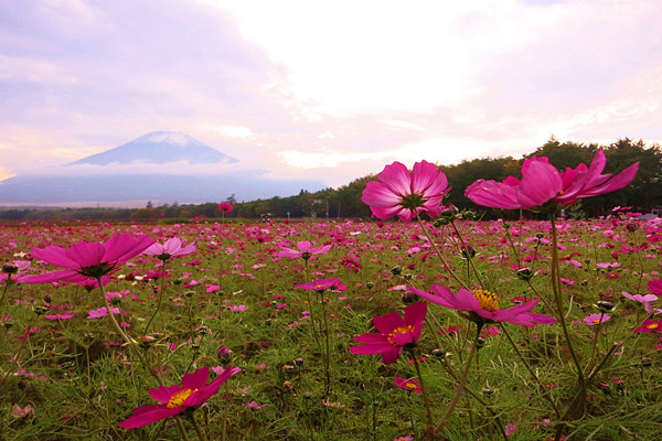 富士山腳下的花之都公園,一年四季以不同的風景與各式花卉吸引觀光遊客前來體驗自然之美。9月初至10月中時分來山梨縣山中湖,除了可以遠眺富士山景,更可以欣賞波斯菊花海。在聖山腳下欣賞波斯菊,別有一番秋日風情。