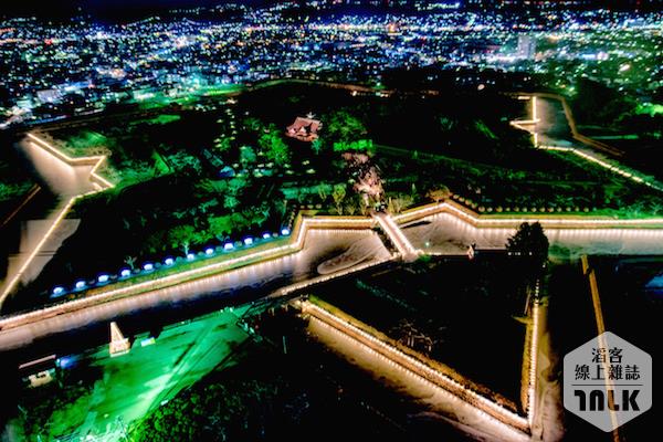 深具歷史背景,被列為日本百大名成的五星形城郭,在冬季約有2000盞燈泡點燈,組成一個巨大的夢幻明星。推薦給到訪的旅人,務必請登上五稜星塔,能從展望台往下望,能更加看到完整的五星造型,同時也能一覽美麗的函館夜景。冬季點燈是12月~2月期間限定,今年則是到2017年2月28日為止。