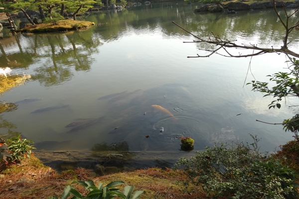 足利義滿將軍鐘意鏡湖池,因為他意氣風發統一南朝,光明天皇及後醍醐天皇據北南,背後是兩大武士集團的交鋒,從平安時期延續到鐮倉幕府的紛擾,在足利尊氏手中暫放一邊。金閣殿後的漱清,象徵餘陽的紛擾歷史。