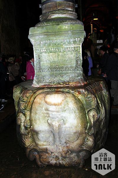 水庫西北角的梅杜莎(Medusa)無時無刻受到群眾包圍,希臘神話中受到雅典娜詛咒而成為蛇髮女妖的梅杜莎,任誰直視其雙眼都將被石化,水宮中的梅杜莎頭柱一個頭貼地,一個臉貼地,其中一種倒放的說法是為了避免梅杜莎的眼神與人接觸,但即便梅杜莎神話至今全世界耳熟能詳,周圍依然永遠圍繞著快門按不停,肉眼不斷凝視端詳,彷彿想穿透梅杜莎如何石化生物秘密的人類,順道投下幾枚銅錢在水中,不知是祈求女妖的庇佑還是賄賂女妖別施法。至於梅杜莎為何出現在此,至今仍無人能真正知曉建築師的心思。然而對於神秘的水宮來說,解不開的謎團或許更添票房。