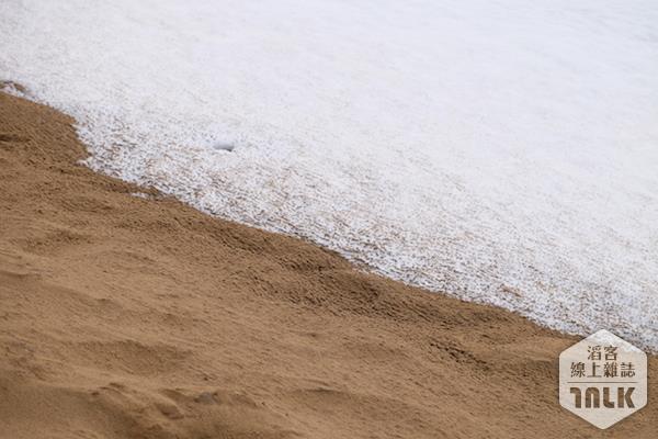遼闊的沙丘裡,行走的旅人變成了小人國裡的人物,慢慢地前進中。瞬間讓人錯覺來到了真實的沙漠,似乎下一秒便能看到背著行李的駱駝們,出入在沙丘中。