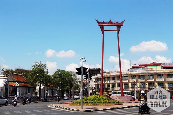 二十一公尺高的巨大紅色柚木鞦韆架(Sao Ching Cha)聳立在蘇泰寺(Wat Suthat)前,高聳入雲的彷似通往另一個時空的通道,空蕩蕩的鞦韆架少了鞦韆的陪伴或許孤獨,更缺失了原有與世界共同的「動性」,但依然歲歲年年認真執行自己身為曼谷地標的任務。