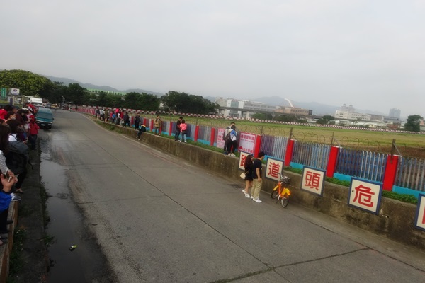 濱江街180巷是一條往大佳河濱公園的捷徑,從民權東路的小廟右轉後即會看到右手邊用木柵欄圍籬出來機場的邊界,左手邊是小菜園零星分散。但見人們站在較高的左手邊望向機場內準備往反方向飛離的飛機,後座聲音隆隆漸漸散去;又見人們手拿相機,企圖捕捉從頭頂飛過的飛機餘尾,讓轟隆聲響貫穿耳膜。情人、夫妻、攝影專業人士、小孩無不專注在飛機的昇落中,好像可以看到青春國片的女主角對頂頭飛機吶喊一句愛人的嘶吼。