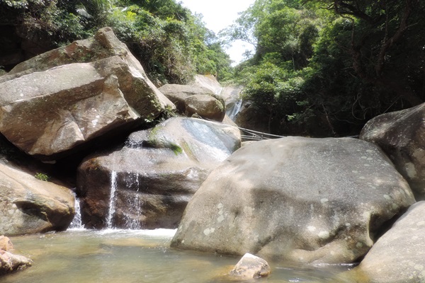 圓覺瀑布位於通往圓覺寺的途中。順著大溝溪而上,轉角處溪水頓時輻射扇開。幾塊大石頭交疊而成,瀑布的水勢並沒有很大,低淺的水潭中很適合光著腳簡單戲水。亦可坐在石頭上乘著樹蔭的涼,靜聽水聲、蟲鳴、笑聲。