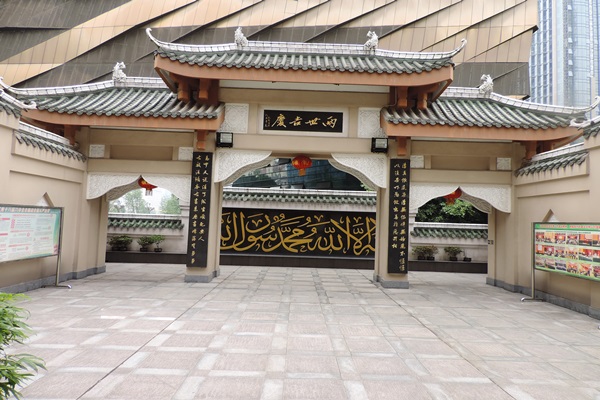 位在東城根街與人民西路一個看似不起眼的交叉路口有一座近三百多年的清真寺,也就是”皇城清真寺”,1950年代起因成都的擴大新建而遷居於此,作為四川第一大及合法的宗教聚會場所的清真寺,自有其歷史及社會意義。進入大殿,南北有沐浴室,二樓有藏經閣,樓殿庭室內大部分皆輔以現代建築形式及設備,但外殿仍保存中西風混合的特有形式,寺廟前有一小塊小小的空地,幾個小車攤販賣著回教祭祀禮拜時會吃的硬餅,是一種未發酵而裡頭放入葡萄乾及砂糖而烘焙的自然甜餅,這裡沒有人民南路的喧囂而是多一分寧靜。