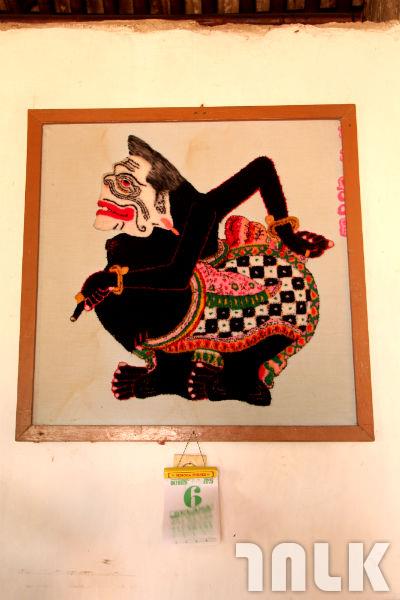 泥牆半裂的客廳裡掛著幾幅畫,正對著門面的Semar不費吹灰之力的吸引了進門者的目光,一股親切感油然而生,對於印尼人來說是崇敬的心靈依靠。卡斯第(Kasdi)先生傳承了來自父親的藝術基因,他的毛線畫師傅來自於安汶省(Ambon Province),對於畫作,卡斯第是驕傲的,他把每幅畫從牆上拿下只為讓客人拍攝,而讓他跟自己的作品合拍時,他則害羞的閃避了鏡頭,鄉村人的恬淡謙遜一個動作就表露無遺。