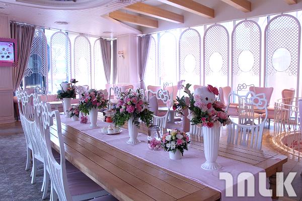 大大的粉色系無嘴貓頭在HELLO KITTY咖啡館門框上無疑是最吸睛的廣告招牌,不用文字不需贅述,走過路過的都不會錯過,日本三麗鷗公司創造出來的這個角色無國界的風靡各地,帶領著粉紅全球化的風潮,比起蘇聯赤化的手段,看似依然軟實力略勝一籌。
