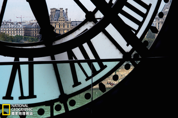 奧賽美術館的大鐘框住了對岸羅浮宮的曼薩式屋頂,也標記著那留不住的光陰。