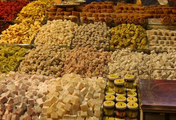 土耳其人喜愛甜食,土耳其軟糖是國家級的甜點,觀光客總是會帶回幾包才算來過土耳其。土耳其軟糖,土耳其語是”LOKUM”,意思是吃了軟糖後會喜悅的意思。伊斯坦堡的香料市集內有上百家的軟糖店,走進市集迴廊內,空氣中迷漫著甜蜜的香味,兩旁店家則忙著請人試吃,非常熱鬧。五言六色的土耳其軟糖甜蜜指數破表,一口咬下去,甜甜的味道在嘴巴,幸福洋溢在臉上。有些軟糖內塞入榛果,核桃,開心果,增加不同口感。甜蜜的滋味就藏在土耳其軟糖內!