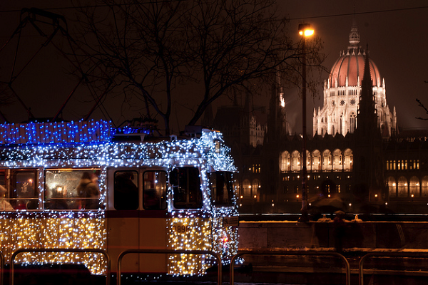 (布達佩斯的聖誕電車與國會大廈 圖取自budapestchristmas)
