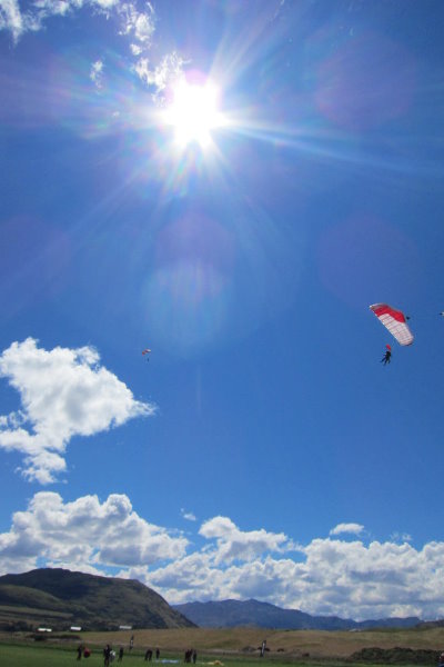 在紐西蘭南島有不少可安排高空跳傘的地方,比如說:很Queenstown、Lake Wanaka 、Fox Glacier…都是嚐試體驗的好地點,惟價格與風景都不一樣。在皇后鎮跳傘最特別的是,能同時飽覽山景、海景、草原、羊群,如此美麗又多變的景色令人此生難忘,若有購買影片與照片者,跳傘公司會製作成光碟以及沖洗成明信片,為您的壯舉留念!