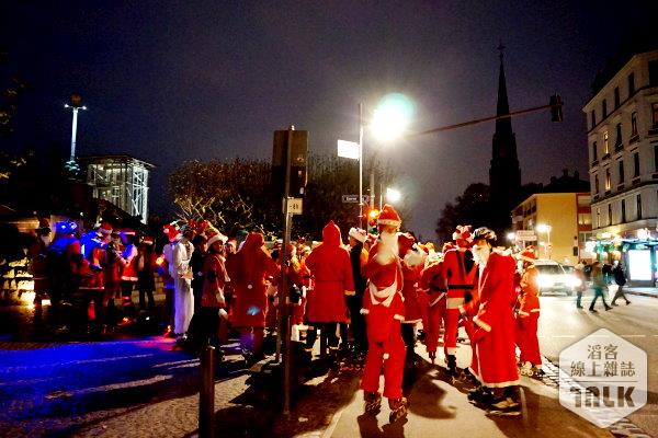 ▲穿著溜冰鞋的聖誕老人穿梭在街上慶祝。